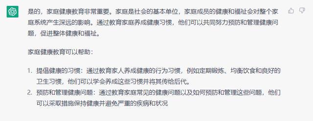 國人用ChatGPT,我覺得最大的不便是“翻譯歧義”,因為中華文化博大精深,翻譯工具只能表象翻譯問題,就如我給出的是家庭生命質量管理的重要性,最后演變成了家庭健康教育的重要性,雖然底層邏輯差不多,但是范圍卻相差甚遠。(有待繼續完善)