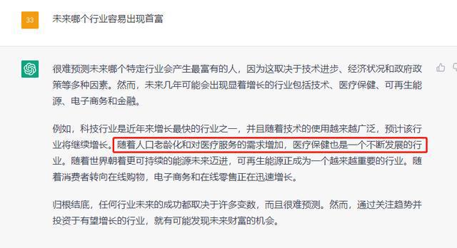 ChatGPT列舉了5個行業,分別是科技行業、醫療保健、可再生能源、電商和金融,并且給出了籠統的解釋。