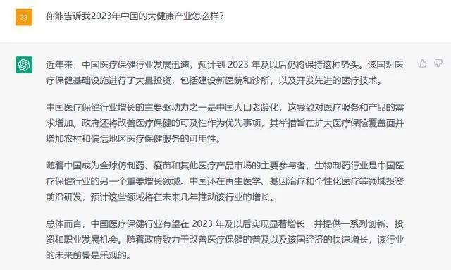 最后,我們一起來看看ChatGPT對大健康產(chǎn)業(yè)的“評價”。