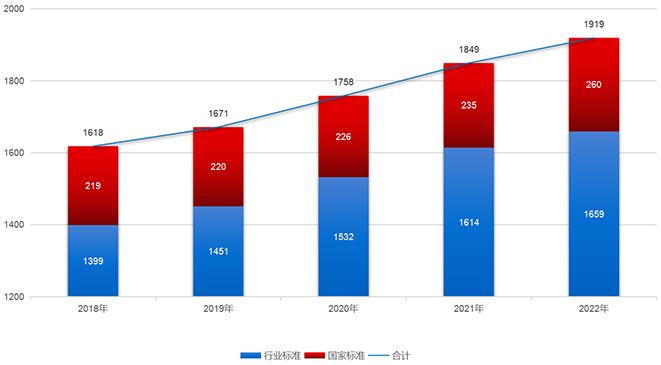 截至2022年12月31日,醫(yī)療器械標(biāo)準(zhǔn)共1919項(xiàng),近年來,醫(yī)療器械標(biāo)準(zhǔn)數(shù)量穩(wěn)步提升(見圖3)。