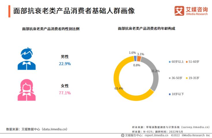 iiMedia Research(艾媒咨詢)數據顯示,購買面部抗衰老類產品的消費者中女性占77.1%,男性占22.9%,63.4%的消費者年齡為19-35歲,31.2%消費者年齡為36-50歲。艾媒咨詢分析師認為,隨著人們對面部抗衰老的意識逐漸深化,延緩衰老的需求日益增長,且消費面部抗衰老類產品的消費者大部分為女性和90后、00后的年輕群體,面部抗衰老類企業消費目標群體應著重面向年輕女性消費者。