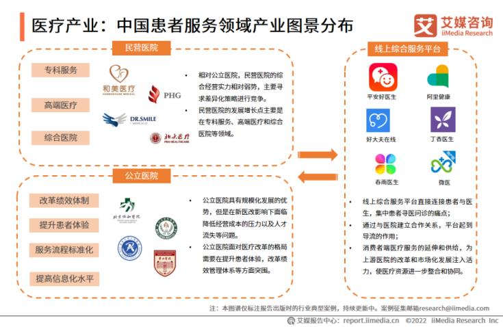 在互聯網移動技術和社會醫療消費需求的雙重刺激下,大健康產業以用戶為核心,研發提升患者服務水平綜合的患者服務產品,是大健康產業前端發展的核心之一。艾媒咨詢分析師認為,醫療服務的延伸有利于整合與盤活公立和民營醫院資源,進一步促使社會資本進入醫療領域。