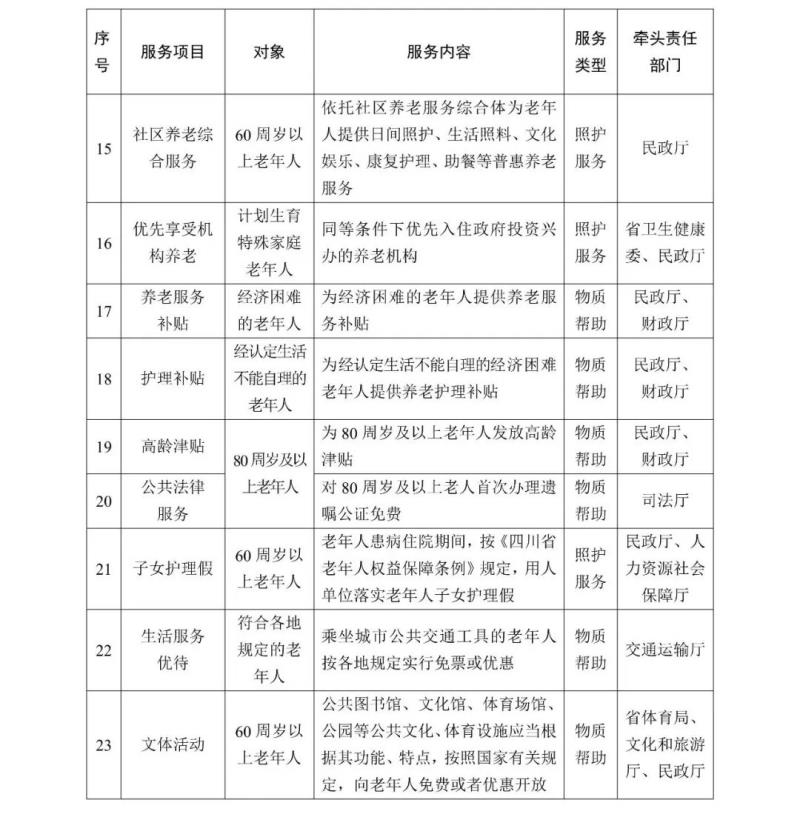 據研究機構分析,我國正處于人口老齡化加速階段,老年人口在未來將持續加速增長,預計在2050年達到4.8億人。隨著老年人口數量的增長,老年人群的養老和健康需求也隨之不斷增長。為保障老年人“老有所養”,2023年各地政府密集出臺相關政策。近日,四川省人民政府發布了《四川省推進基本養老服務體系建設實施方案》,提出四川省基本養老服務四大重點任務,并明確列出23項基本養老服務清單。據了解,《方案》出臺的目的為全體老年人提供方便可及、價格可負擔、質量有保障的基本養老服務,保障老年人群的基本養老權利。
