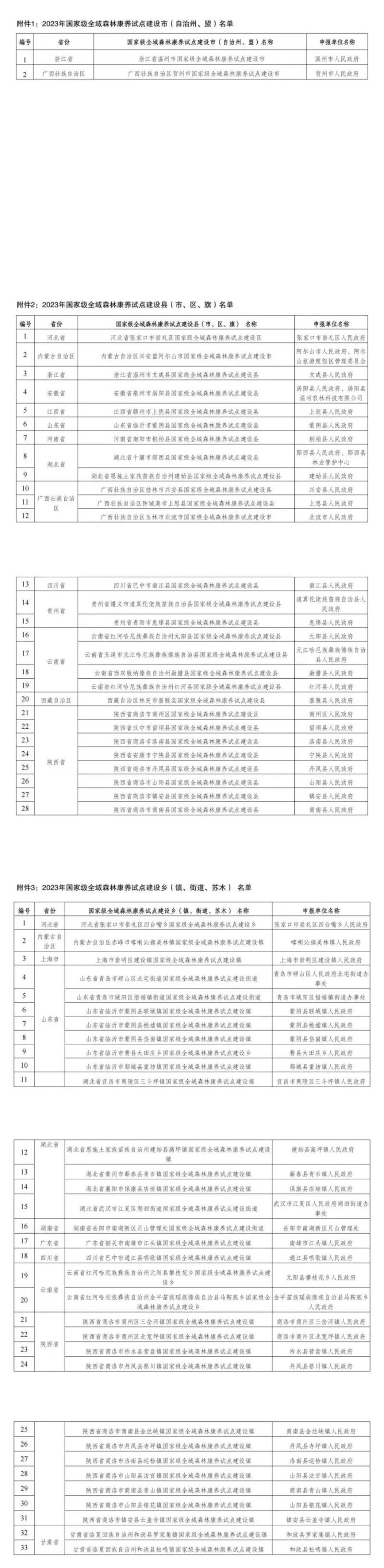 以下是2023年國家級森林康養試點建設單位具體名單: