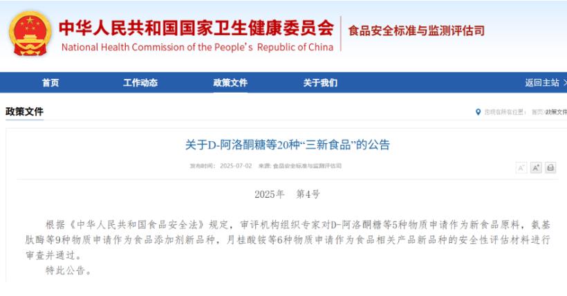 歷經5年審批,D-阿洛酮糖終獲國家衛健委批準成為新食品原料!7月2日發布的《關于D-阿洛酮糖等20種'三新食品'的公告》中,同時批準了釀酒酵母CNCM I-3799等五種新原料。這一舉措無疑為我國健康食品行業帶來一場新變革。